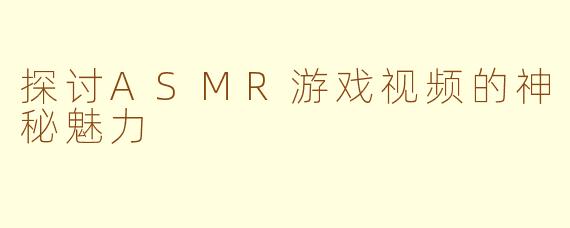 虽然ASMR游戏视频在一定程度上受众比较小众,但是其神秘独特的魅力却吸引了越来越多的人。在这个快节奏的社会中,人们渴望一种不一样的放松方式,ASMR游戏视频正好满足了这种需求。让我们一起来探寻ASMR游戏视频的神秘魅力,感受其中的奇妙之处吧!最后还请注意欢迎关注我哦!