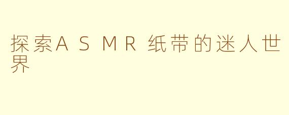 ASMR(自发性知觉经络反应)是一种能够引发愉悦感和放松感的听觉体验,而纸带ASMR作为其中的一种形式,因其独特的声响和触感,受到了越来越多人的喜爱。纸带产生的声音轻柔而细腻,仿佛是一种低语,它可以让人在忙碌的生活中找到一丝平静。