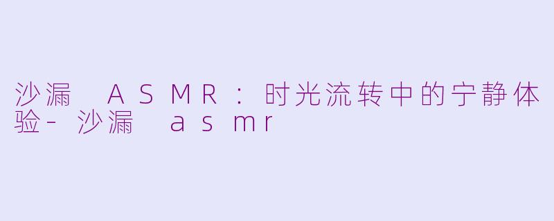 随着ASMR(自发性知觉经络反应)在网络上的火热,越来越多的人开始探索不同的ASMR内容。其中,沙漏 ASMR以其独特的声音和视觉效果,吸引了大量爱好者。沙漏中的沙子缓缓流动,发出细腻的沙沙声,给人一种心灵上的宁静与放松。