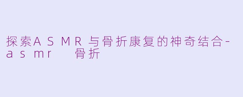 随着ASMR(自主感觉经脉反应)的流行,越来越多的人发现其在放松和减压方面的帮助。然而,值得关注的是,ASMR也可以为骨折康复带来意想不到的益处。当身体受到伤害时,患者常常面临疼痛和焦虑,而ASMR的声音如轻柔的耳语、缓慢的敲击声以及自然的环境音可以帮助缓解这些不适。