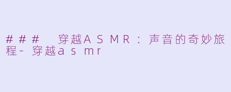 ASMR(自发性知觉经络反应)是一种通过细腻的声音和触觉刺激,带给人们宁静与放松的体验。而“穿越ASMR”则是一种崭新的概念,它将听觉体验与虚拟旅行相结合,让听众在耳边的细语和轻声之间,仿佛身临其境。