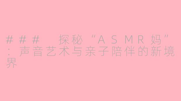 综上所述,“ASMR妈”不仅是声音的艺术,更是亲子陪伴的创新方式,为现代家庭生活带来了新的温馨体验。