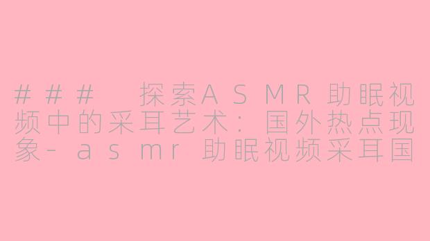 近年来,ASMR(自发性知觉经络反应)视频在全球范围内广受欢迎,特别是那些专注于采耳的内容。这类视频通常通过轻柔的声音和细致的场景来帮助观众放松身心,缓解压力。在国外,不少ASMR创作者通过真实的采耳音效和细腻的手法,营造出一种令人放松的氛围,受到许多观众的喜爱。