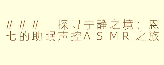 在现代快节奏的生活中,许多人常常难以入眠,焦虑与压力充斥着我们的内心。而恩七的助眠声控ASMR则为我们打开了一扇通往宁静世界的大门。ASMR,即自主感觉经络反应,通过特定的声音刺激,帮助听众放松身心,实现深度的放松与入眠。