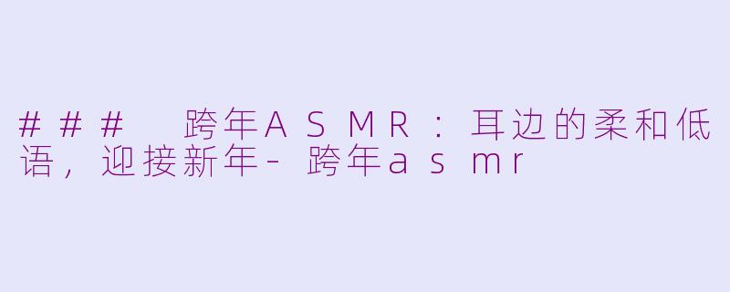 随着新年的钟声渐渐逼近,越来越多的人开始寻找能够放松身心、享受宁静的方式。在这一氛围中,ASMR(自发性知觉经络反应)视频成为众多年轻人跨年时刻的选择之一。跨年ASMR以其独特的声音体验,帮助人们缓解一年的压力,迎接全新的开始。