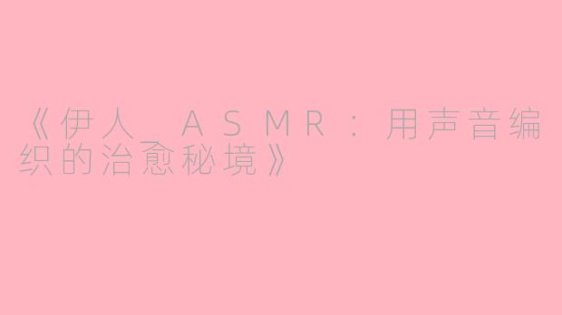 在快节奏的现代生活中,人们渴望一处能卸下疲惫的精神角落,而ASMR(自发性知觉经络反应)正以其独特的感官疗愈力成为许多人的心灵避风港。其中,伊人_ASMR凭借细腻的声音设计与沉浸式的氛围营造,悄然成为这一领域备受瞩目的创作者。