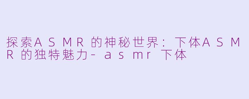 随着ASMR(自主感觉经络反应)在网络上的流行,越来越多的人开始探索这种独特的体验。而下体ASMR则是其中一个较为小众而又引人关注的分支。虽然这一主题可能引发一些争议,但其背后的心理机制和生理反应却值得我们探讨。
