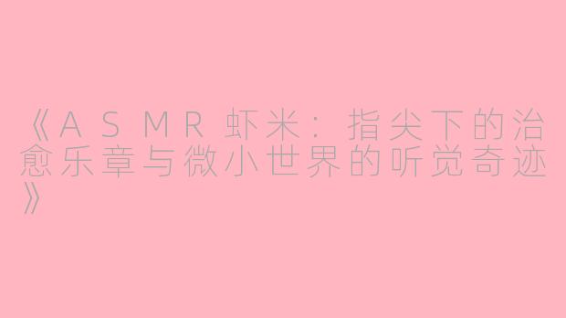 在ASMR(自发性知觉经络反应)的世界里,声音的魔力往往藏匿于最微小的细节中。而“虾米”作为ASMR创作中独特的题材,正以其清脆、细腻的触发声,成为无数听众沉浸式放松的新宠。