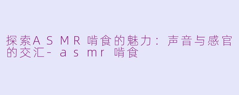 近年来,ASMR(自发性知觉经络反应)逐渐成为一种流行的放松方式。在众多的ASMR类型中,啃食ASMR特别吸引了众多爱好者。啃食ASMR通常以食物的咀嚼声、咕噜声和各种声音为主,让人感受到一种独特的沉浸体验。