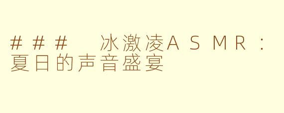 在炎热的夏季,冰激凌无疑是许多人心目中清凉的象征。而近年来,冰激凌ASMR(自发性知觉高潮反应)逐渐流行开来,成为一种特别的听觉享受。ASMR视频中的冰激凌不仅仅是味觉的体验,更是视觉与听觉的结合,让人们在享受美味的同时,感受到一种身心上的放松。