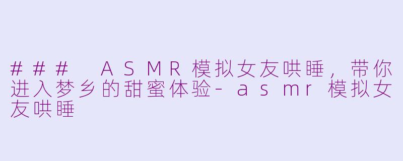 随着生活节奏的加快,很多人都面临着失眠的问题。而ASMR(自发性知觉经络反应)作为一种新兴的放松方式,逐渐受到大家的欢迎。特别是“模拟女友”的ASMR内容,更是让许多人感受到温暖和治愈。