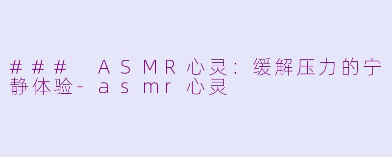 在这个充满挑战的时代,ASMR不仅是减压的工具,更是一种心灵的治疗方式。它通过唤醒我们的感官,让我们重新感受到内心的宁静。无论是在学习、工作,还是休息时,ASMR都能帮助我们更好地调节情绪,找到那份久违的安宁。探索ASMR,或许能让我们在纷繁复杂的生活中,找到一片属于自己的心灵净土。