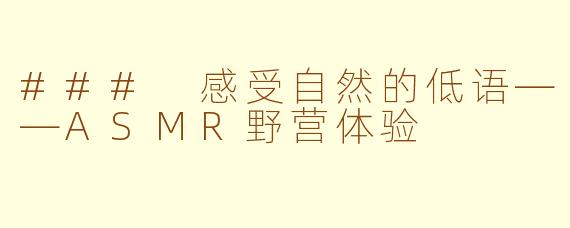 在现代快节奏的生活中,许多人开始寻找放松心情的方法。而ASMR(自主感觉经络反应)以其独特的声音体验吸引了大批爱好者。结合ASMR与野营这一富有趣味的户外活动,不仅能享受自然之美,还能通过细腻的声音感受获得深度放松。